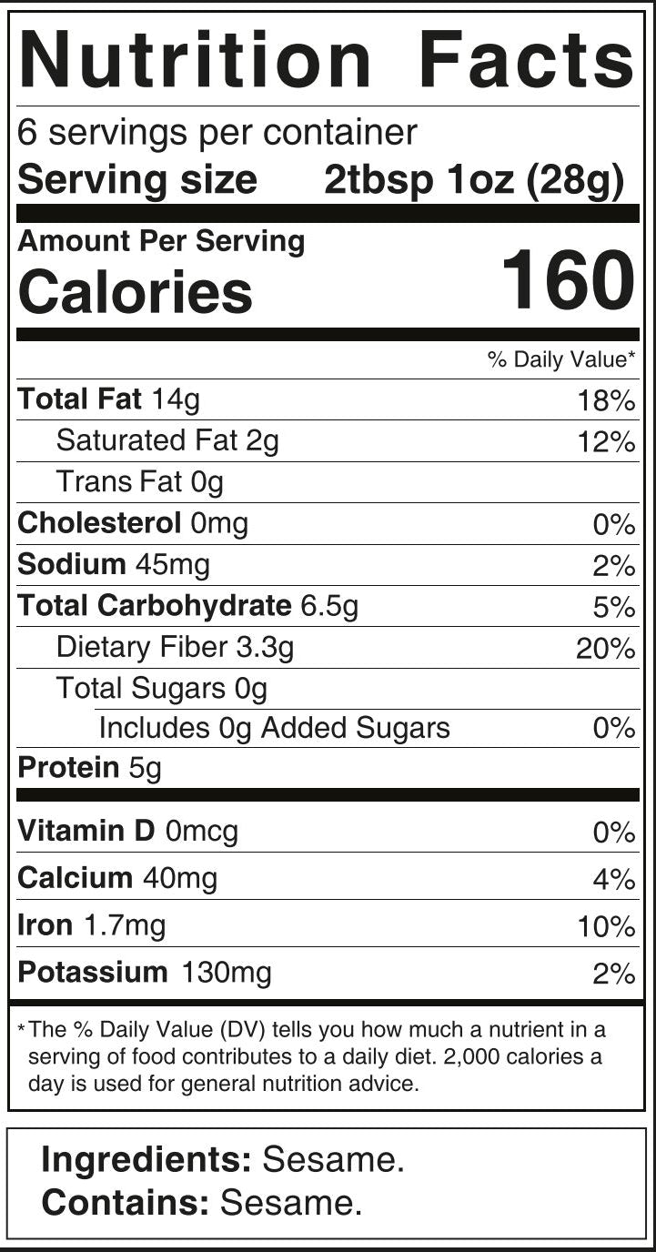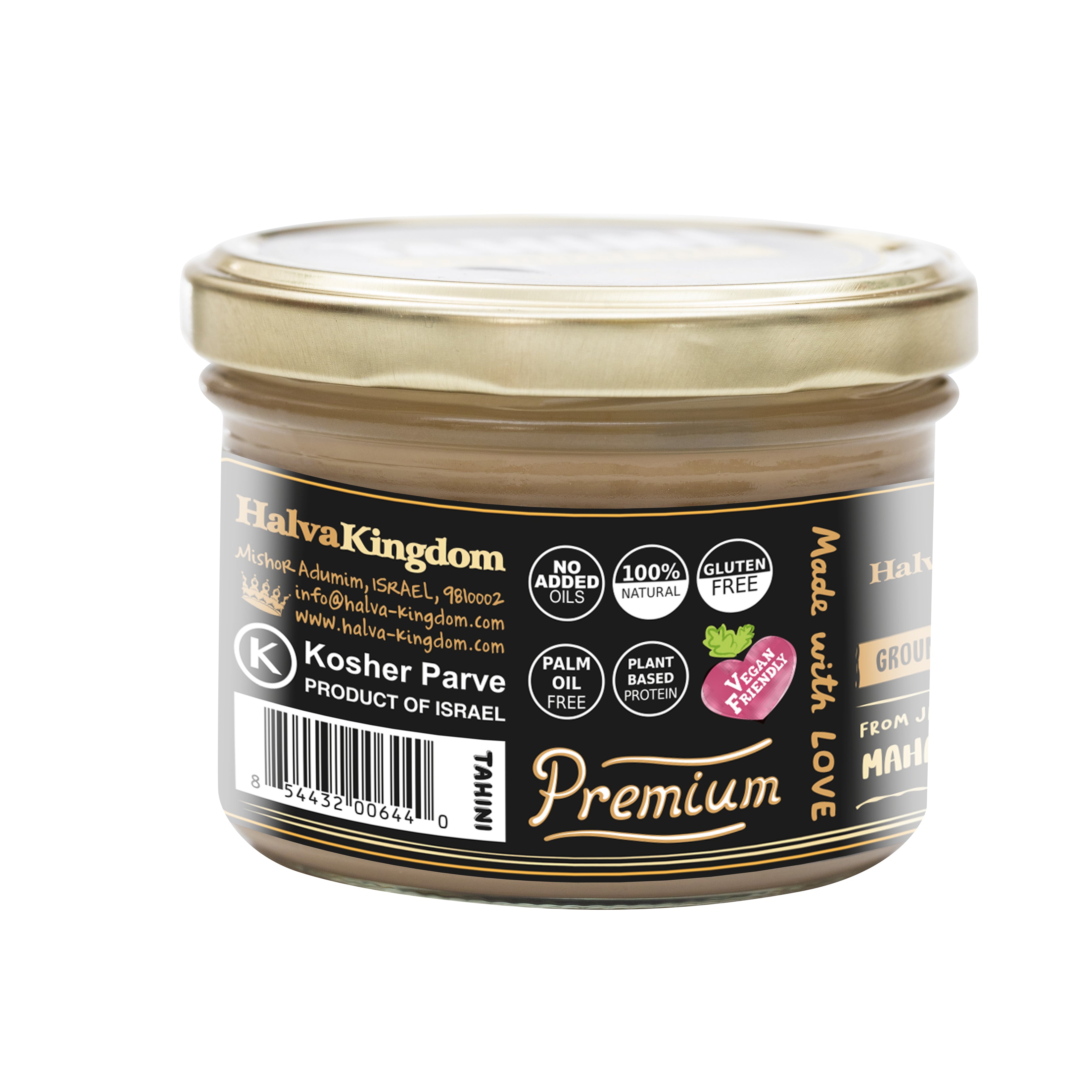Premium Raw Sesame Tahini Jars Raw Sesame Tahini100% NaturalSugar FreeHigh In FiberGluten FreePalm Oil FreePlant Based ProteinVegan FriendlyNet wt. 6.3 OZ/ 180 gramMade In IsraelBadatz Eida Charedi...