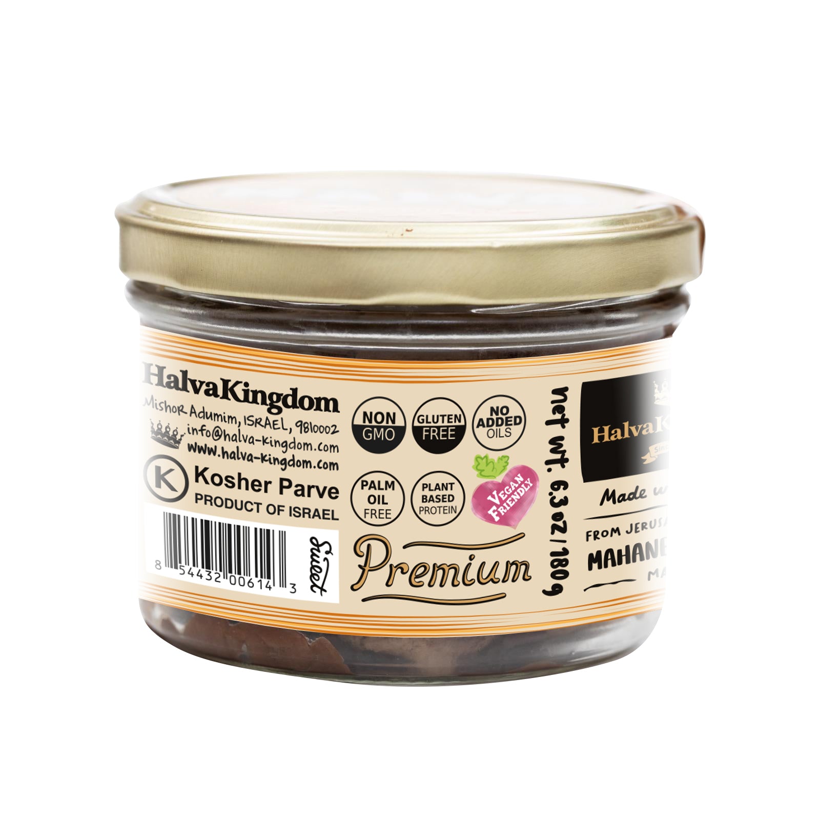 Premium Hazelnut Spread Jars Hazelnut Spread Halva 100% NaturalHigh In FiberGluten FreePalm Oil FreePlant Based ProteinVegan FriendlyNet wt. 6.3 OZ/ 180 gramMade In IsraelBadatz Eida Charedi Kosher...