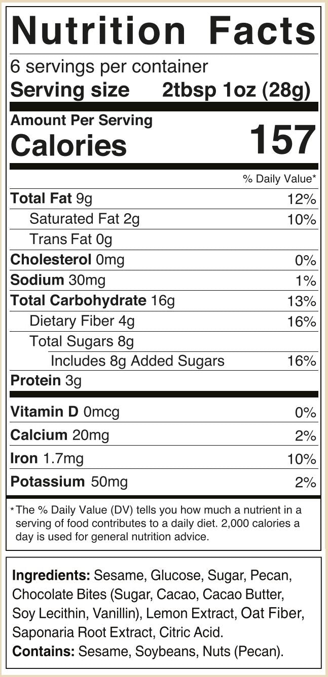 Premium Lemon Pecan Chocolate Jars Lemon Pecan Chocolate Halva 100% NaturalHigh In FiberGluten FreePalm Oil FreePlant Based ProteinVegan FriendlyNet wt. 6.3 OZ/ 180 gramMade In IsraelBadatz Eida...